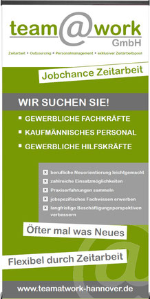 Als Mitarbeiter bei der team@work GmbH sammeln Sie Berufserfahrung, lernen verschiedene Branchen, Betriebe und Kollegen kennen und erweitern Ihre Fähigkeiten und den persönlichen Horizont. Viele Arbeitnehmer nutzen deswegen Zeitarbeit als berufliche Orientierungsphase.